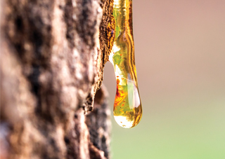 این ماده جزء دی ترپن ها است و معمولاً از ترشحات درخت کاج به دست میآید، گرچه گونههای دیگری، مانند صنوبر و کاج اروپایی (صنوبر اصیل) یا به عبارتی همه گونههای پیناسیا آن را تولید میکنند.